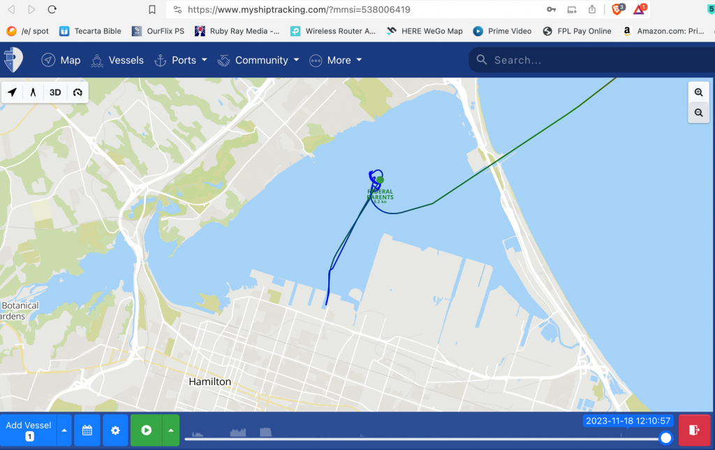 RECENT PORTS: She had been in the Great Lakes in September, then sailed to
