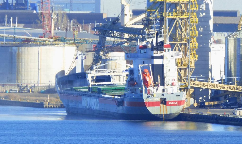 Notes: Owner: Royal Wagenborg. Built in 2001. My sighting was of Vancouverborg taking on grain at P&H Milling Group in Hamilton Harbour. I couldn’t get a good shot no matter what I tried because it was in a secure area. The two best angles I got was from high ground across the harbour with my telephoto, and another shot of the back of the ship outside the secure area. The ship then set off at night, and anchored the next day in Lake Ontario near Port Weller. She then sailed to NEWPORT UK, AUGHINISH Ireland, and three other ports in Europe, before returning to North America.